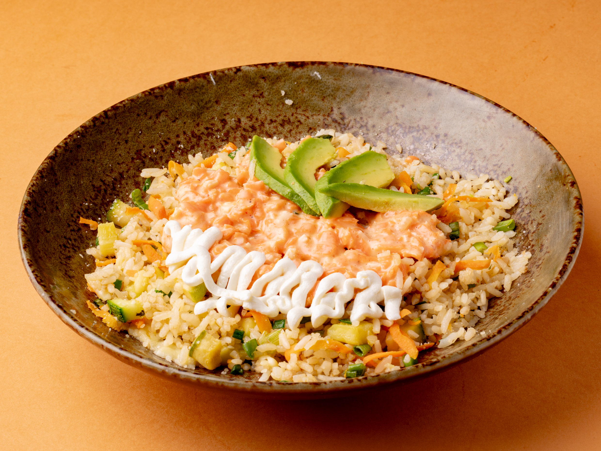 Arroz acompañado de tampico, aguacate y queso philadelphia.