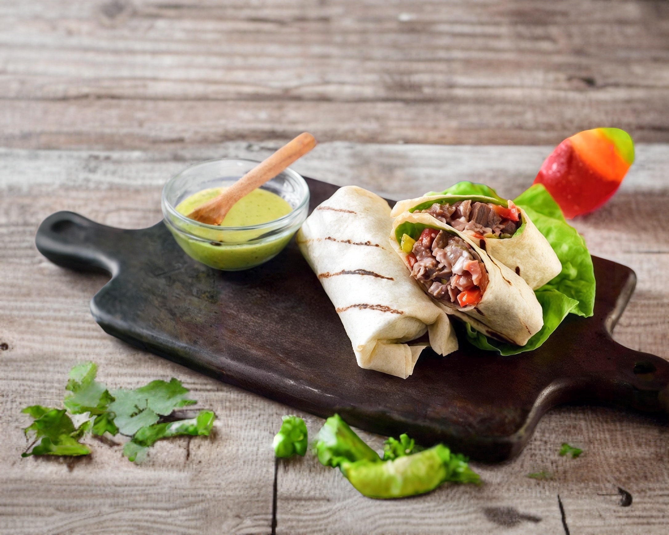 Arrachera, aderezo de espinacas, lechuga y queso.