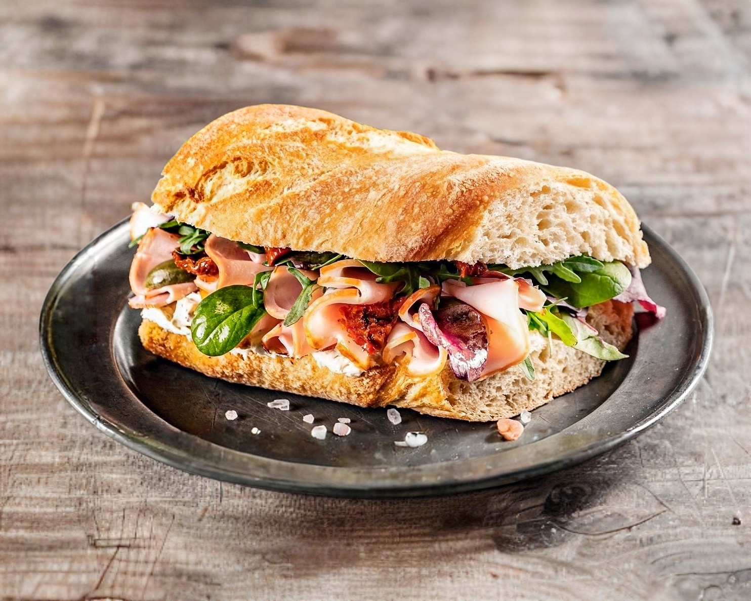 Delicioso baguette acompañado de vegetales frescos y montados en pan frances