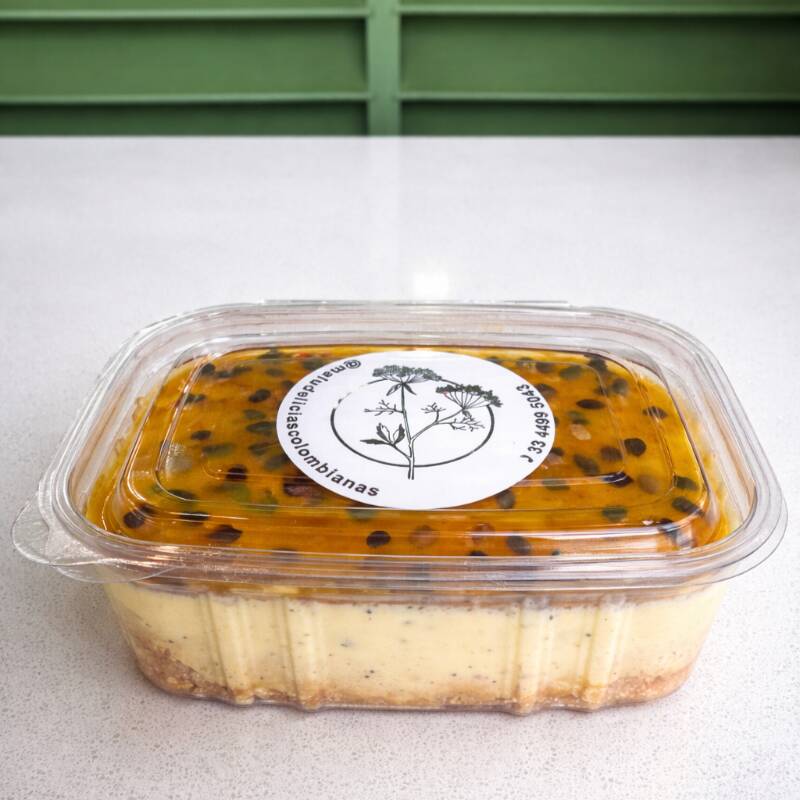 Cheesecake con su exquisito sabor a maracuyá y queso crema que te dejarán con ganas de más.