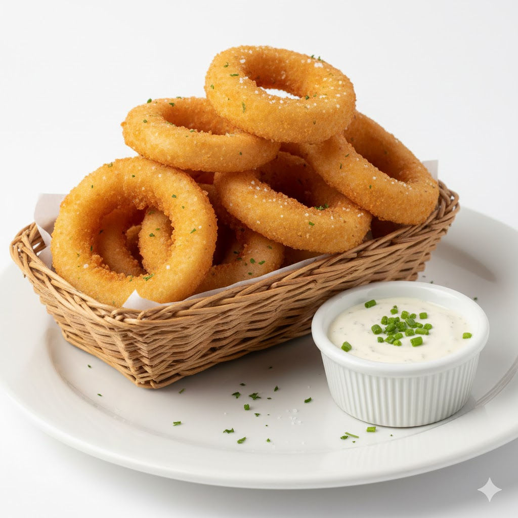 10 piezas de aros de cebolla crujientes con aderezo ranch