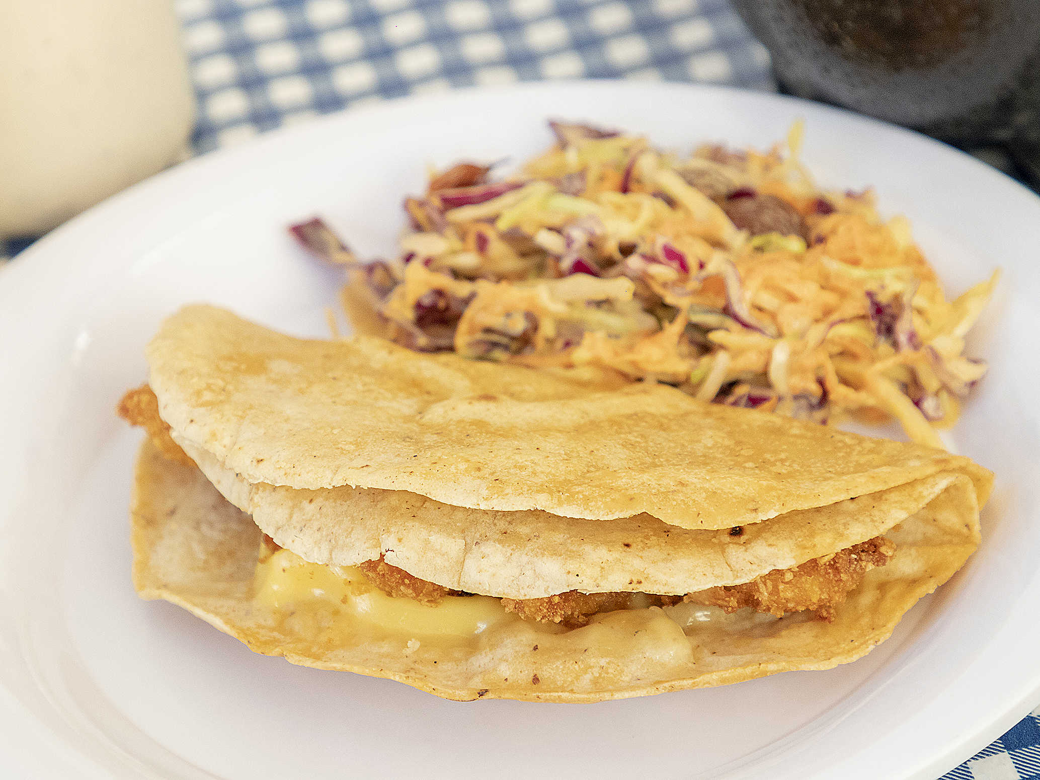 Doble tortilla, queso, y atún adobado