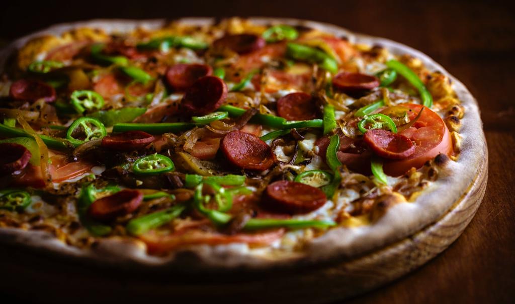 Deliciosa cebolla caramelizada, pimiento morrón, rodajas de chorizo español, jitomate y picosito chile serrano.