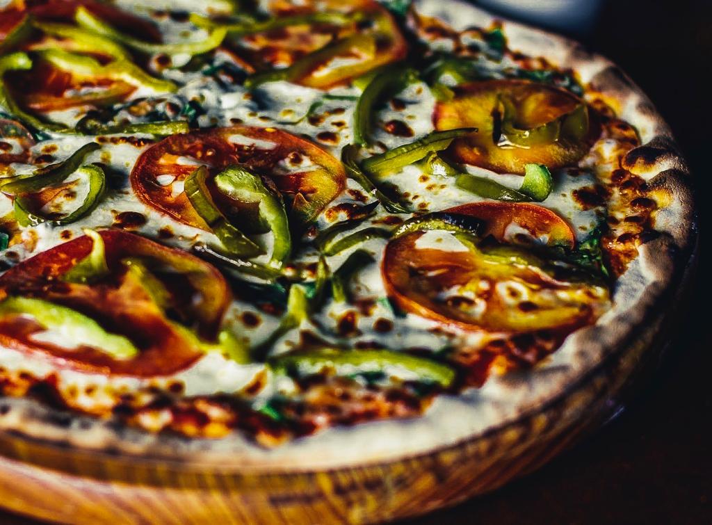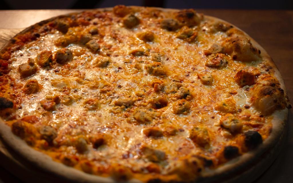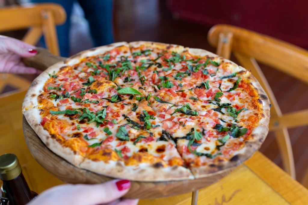 La pizza de la casa, clásica pizza con delicioso jitomate, picado, aceite de oliva y albahaca fresca.