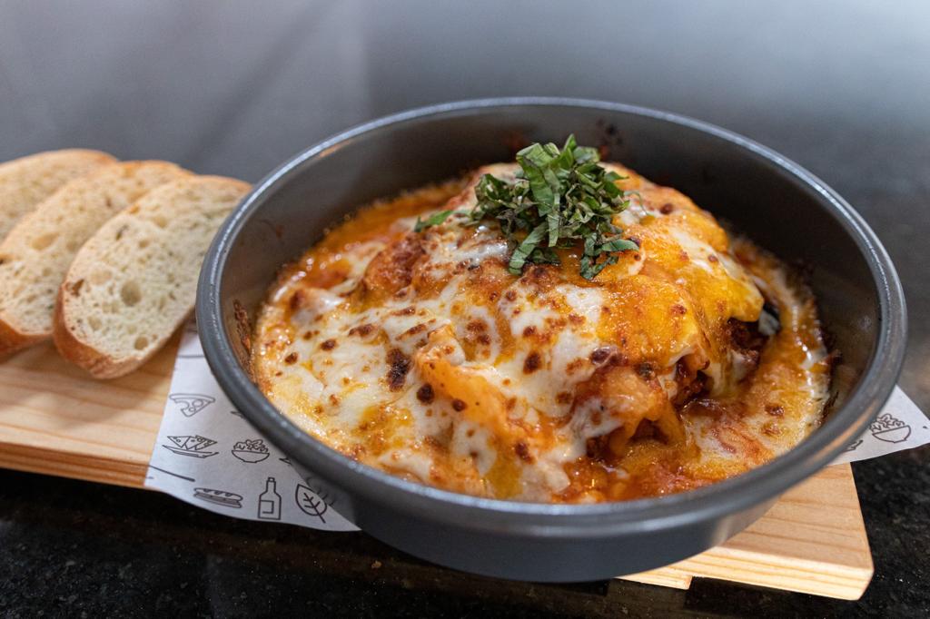 Carne 100% de res preparada con salsa de tomate, aceite de oliva y albahaca, al final queso parmesano recién rallado.