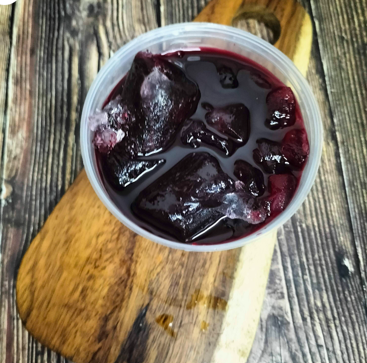 Agua de fruta fresca natural preparada al día se sirve bien fría en tu tamaño a elección con tapa y popote.