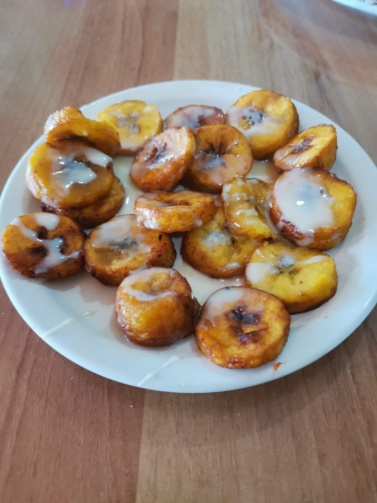 Plátano frito con lechera.