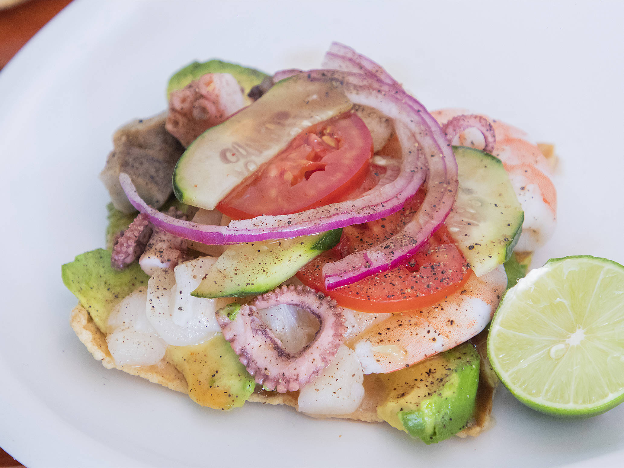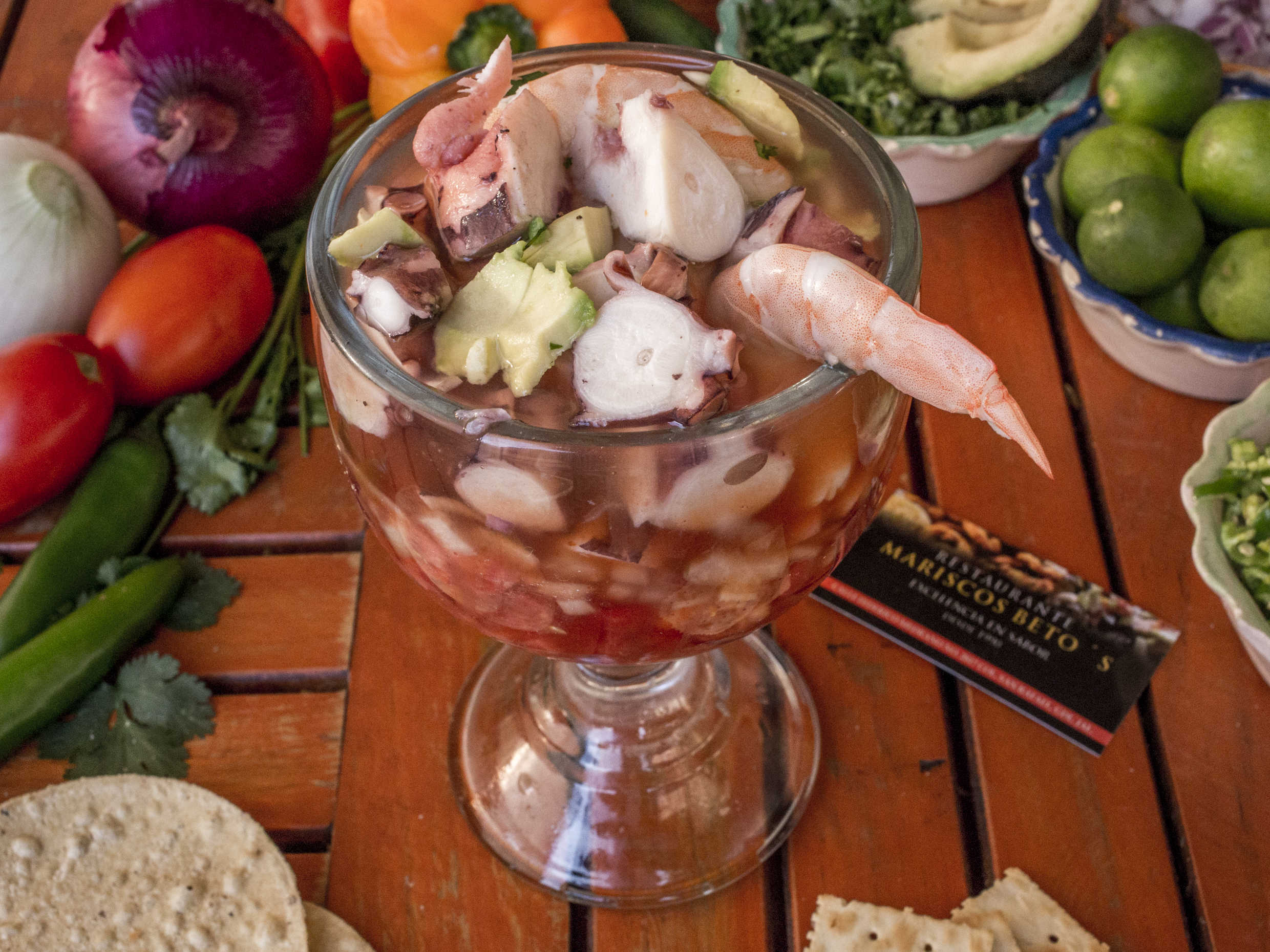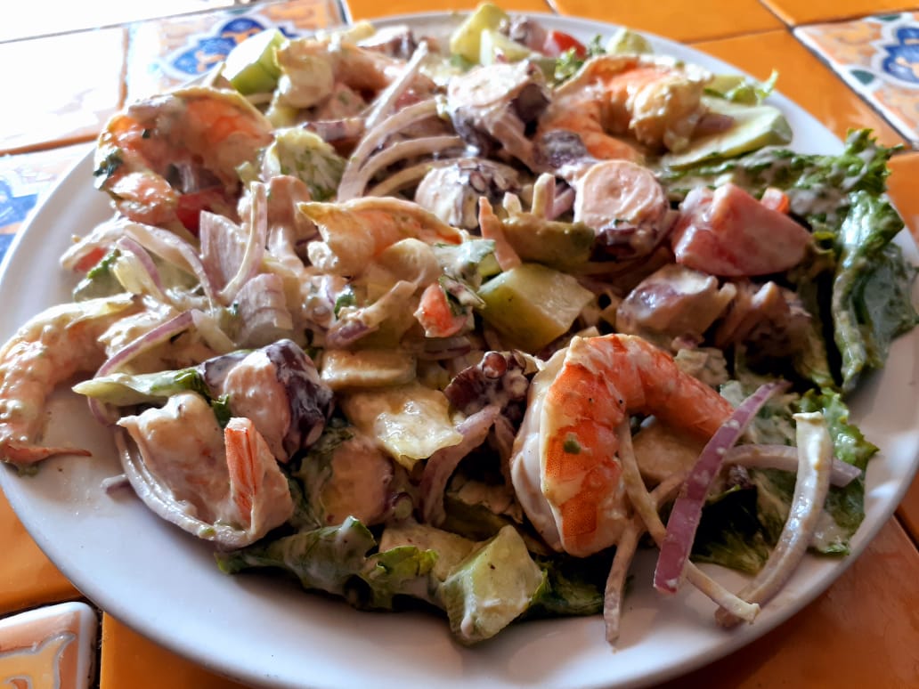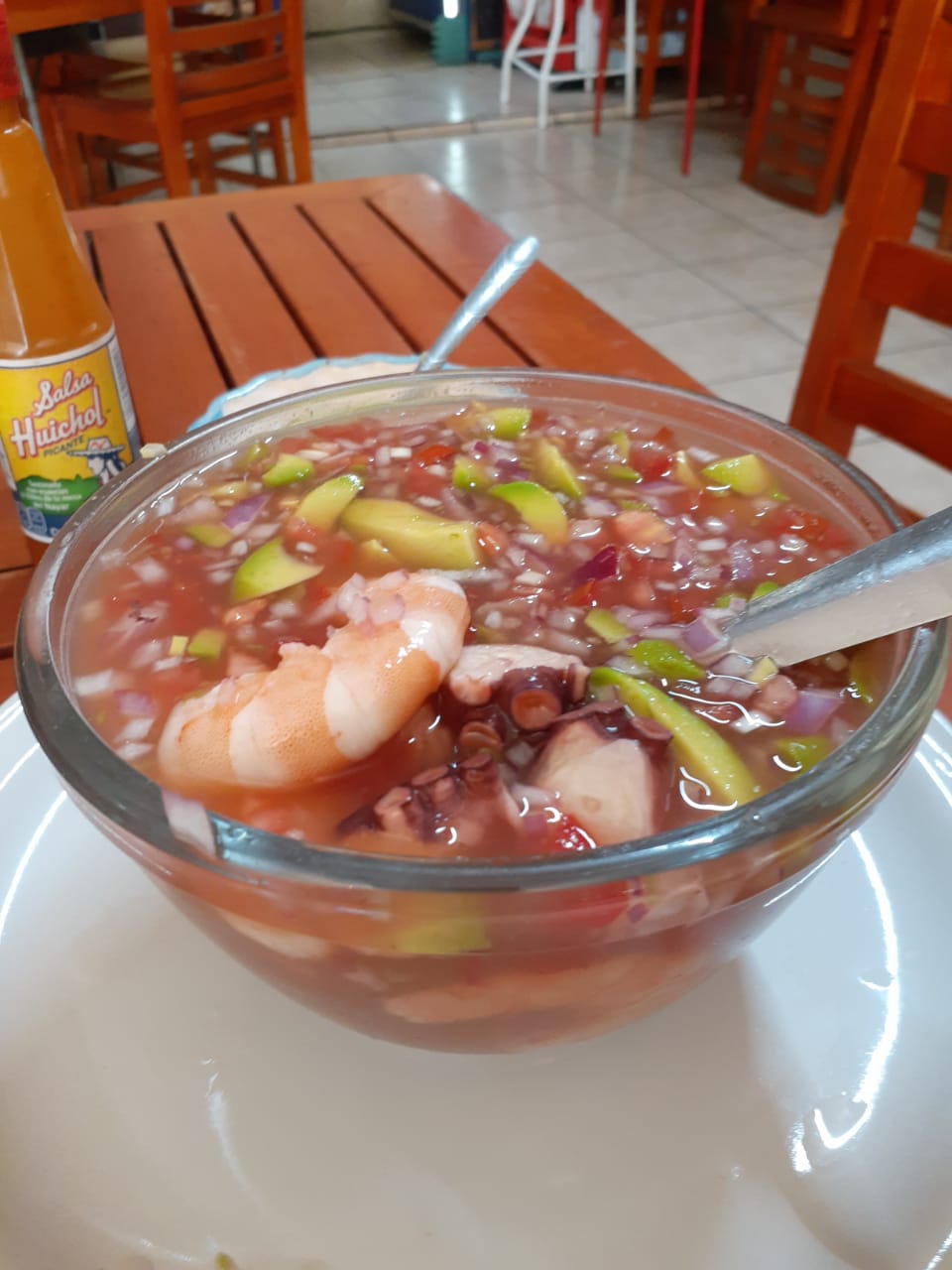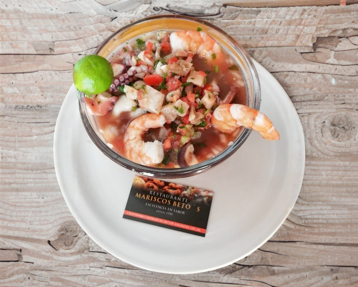 Tazón grande incluye toda la variedad de mariscos en porción menor, camarón, pulpo, callo, ostión, pata, caracol y ceviche.