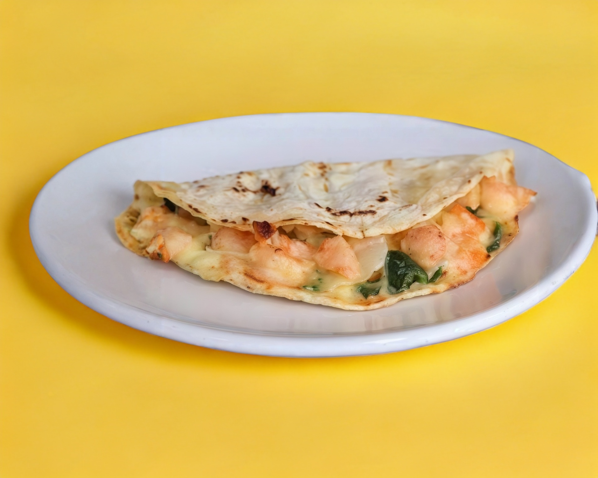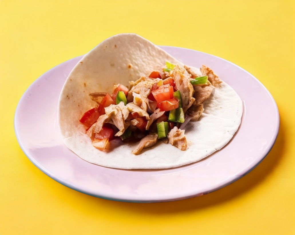 Tortilla de harina con camarón cocido, el taco va frito.