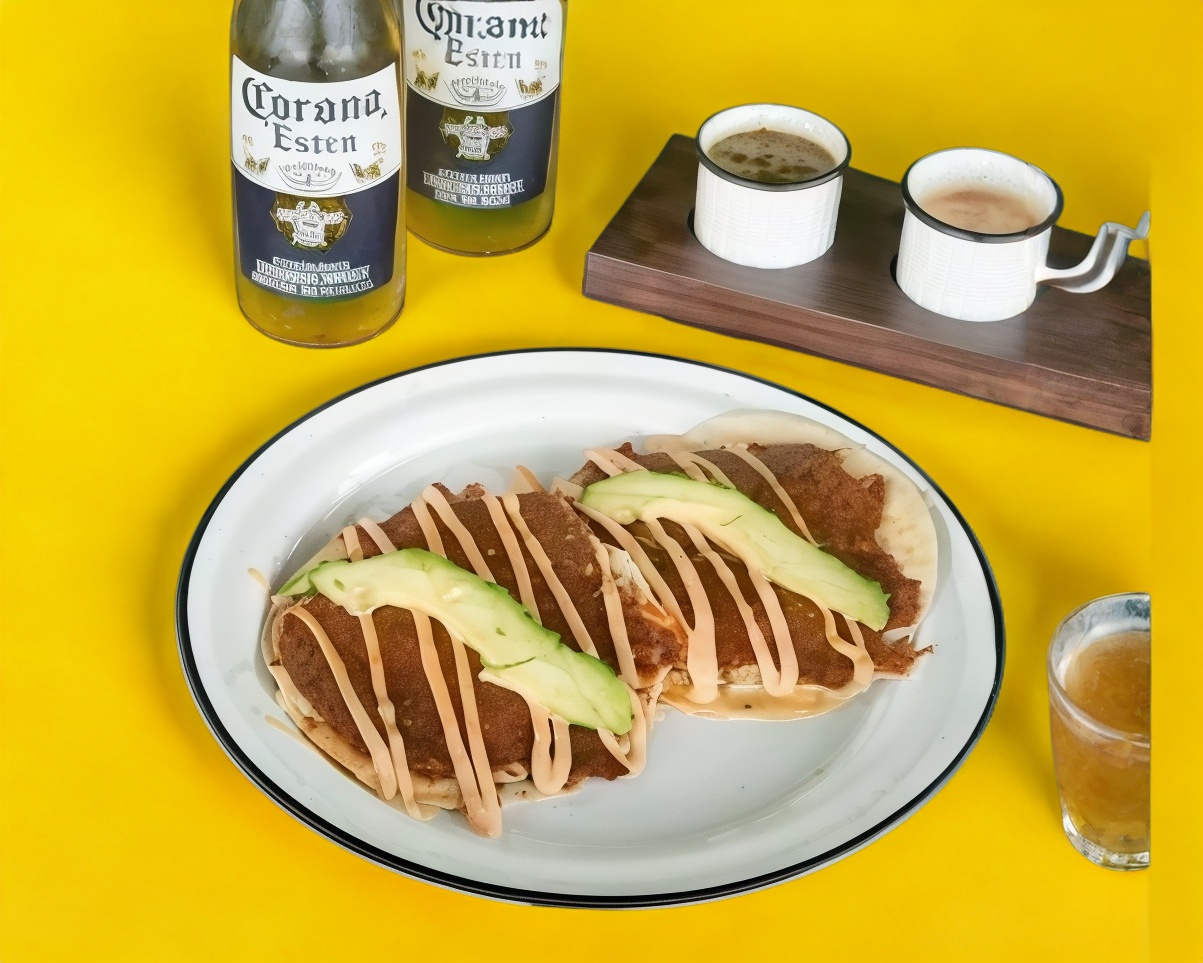 Lleva tortillas y salsa de la casa.