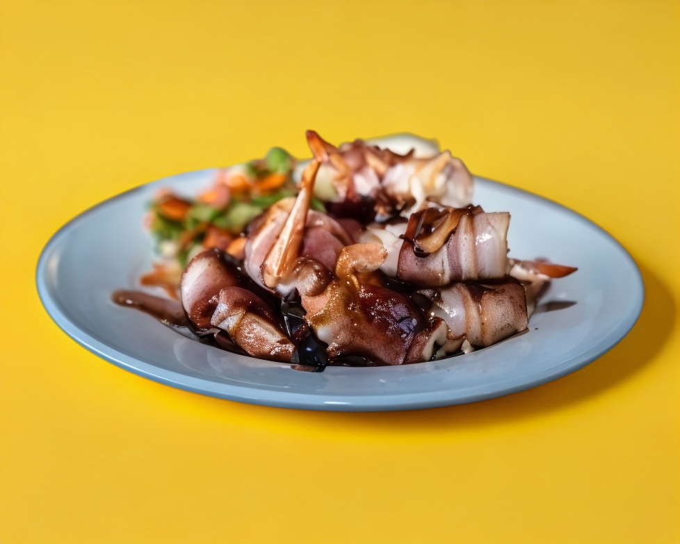 Acompañados con arroz y ensalada. Camarones rellenos de queso mozarella y queso crema philadelphia, envuelto en tocino.
