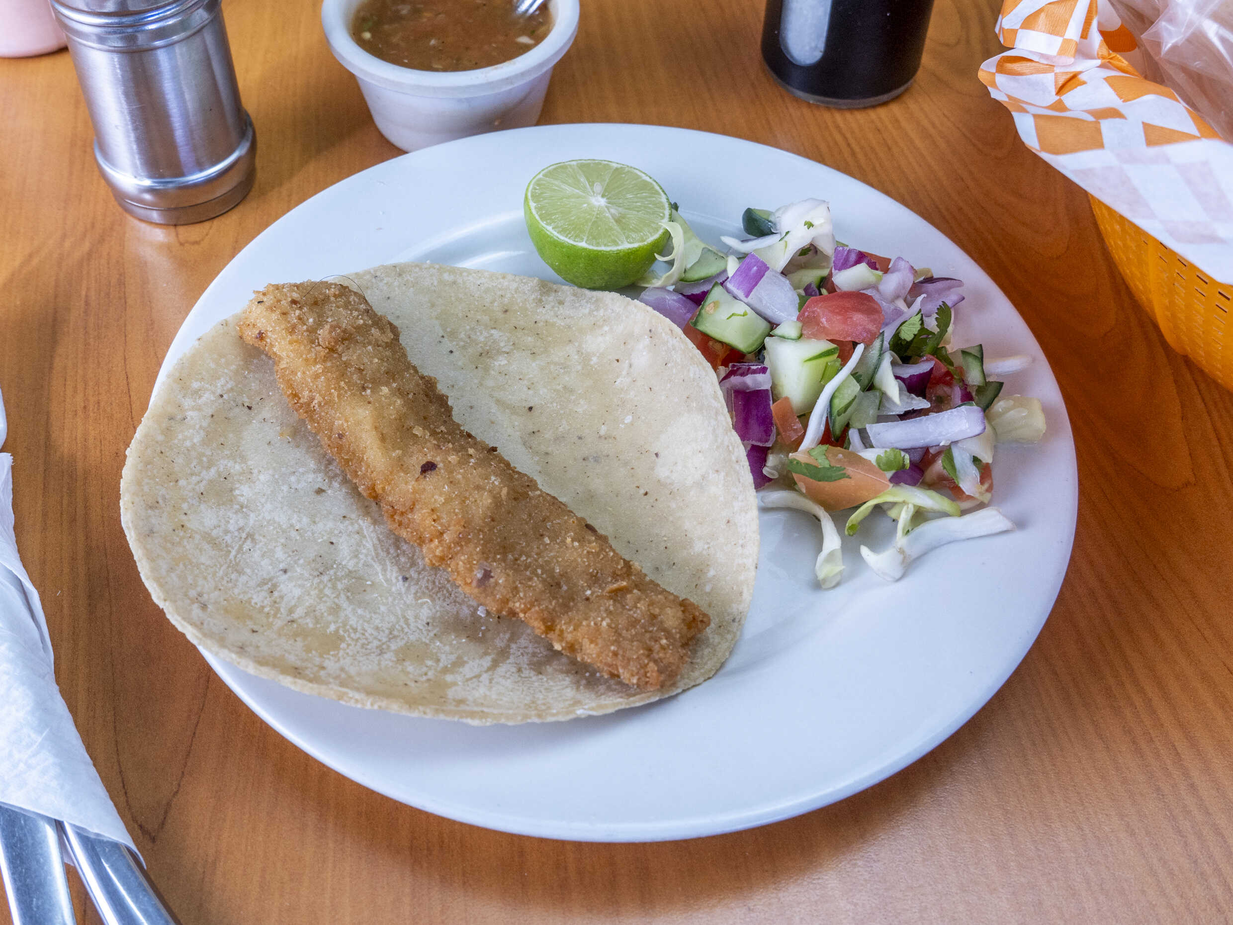 Platillo personal: Taco de pescado*3 + Agua Fresca del Día-*1