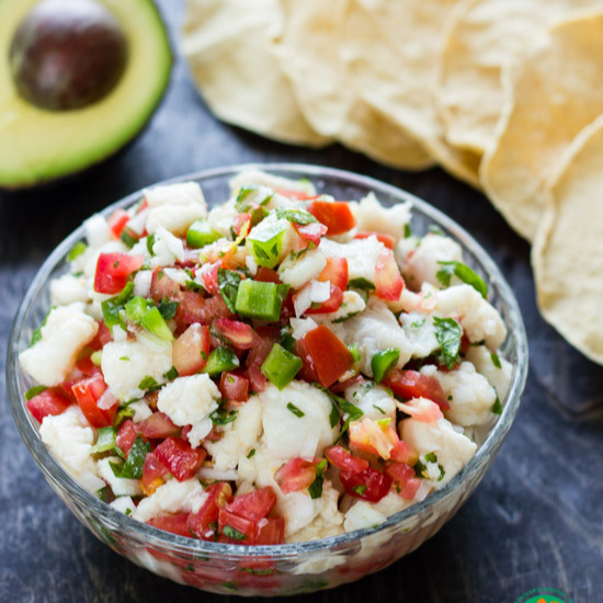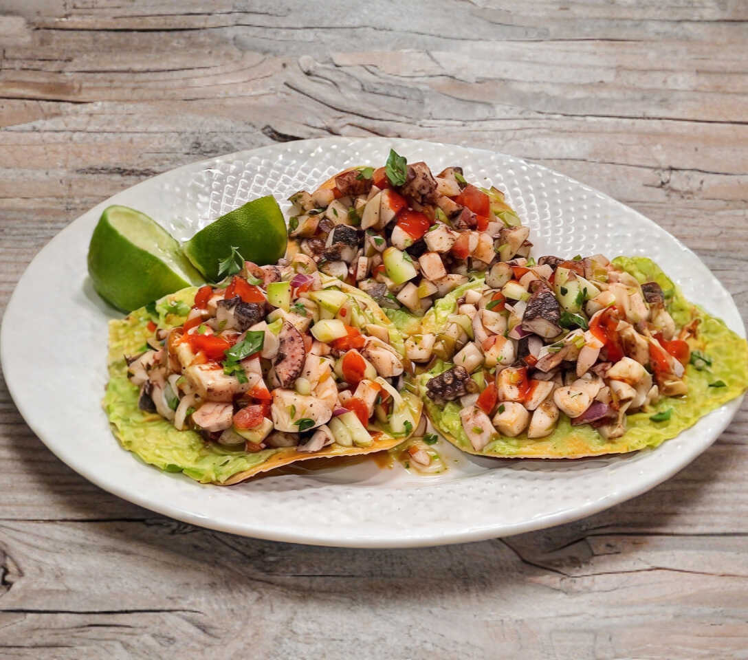 Tostada de Ceviche Tropical (cam crudo y cocido)