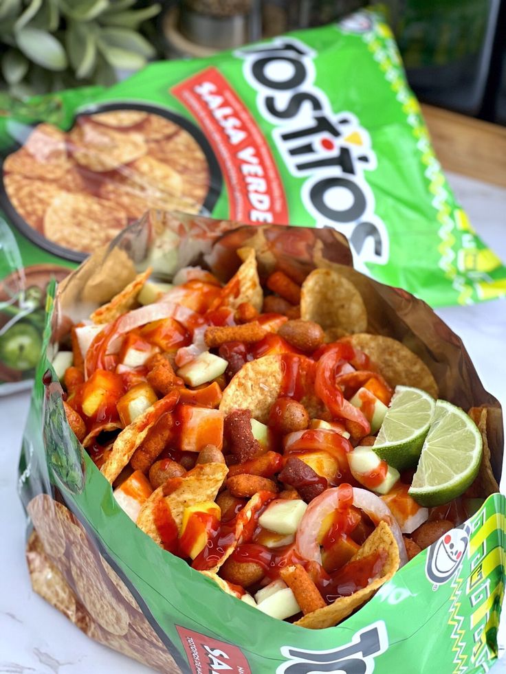 Bolsa de tostitos preparados con el ceviche o aguachile de tu preferencia.