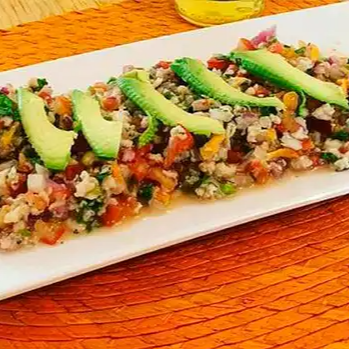 Ceviche de marlín con cebollas, limones y cilantro, 1 L.