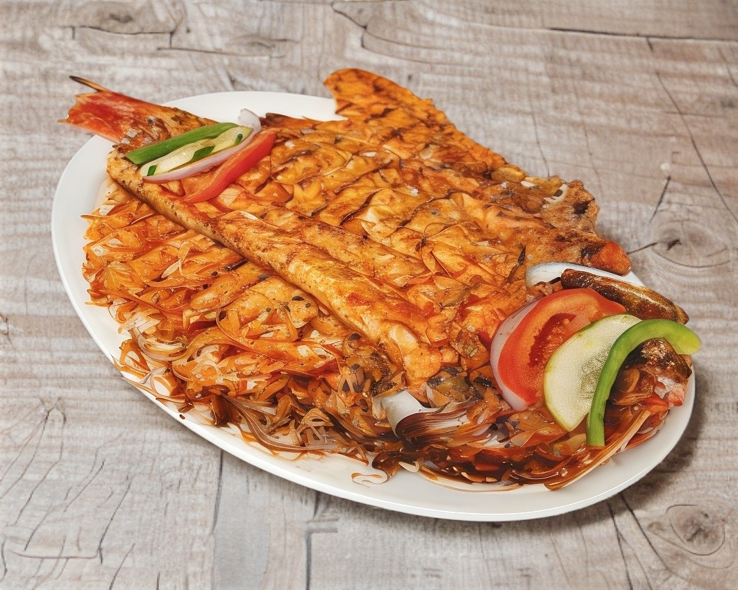 A las brasas salseados con un adobo sazonado por el chef, no picoso.