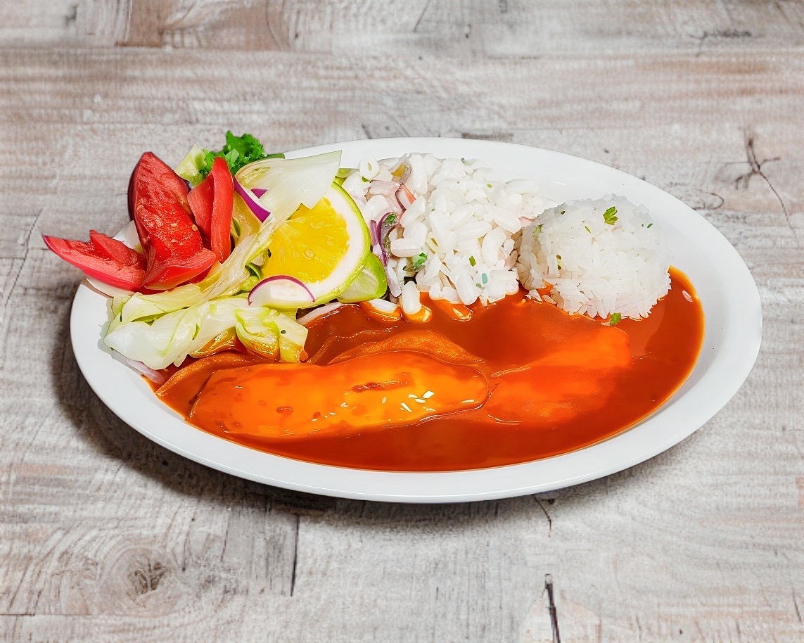 1 Kilo de Pescado acompañado de una deliciosa guarnición de verduras cocidas, arroz y ensalada de lechuga, jitomate, pepino y chile morrón.