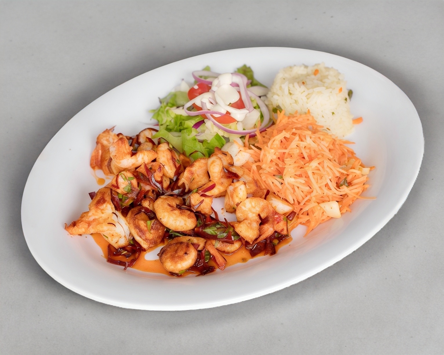 Acompañados de ensalada verde y ensalada de zanahoria, arroz blanco incluye dos trozos de pan con mantequilla (Porcion personal)
