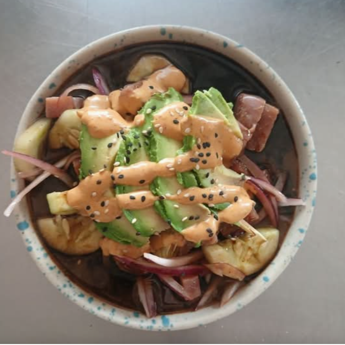 Rico atún fresco, crudo y salseado en salsa agridulce especial de la casa. Contiene pescado.
