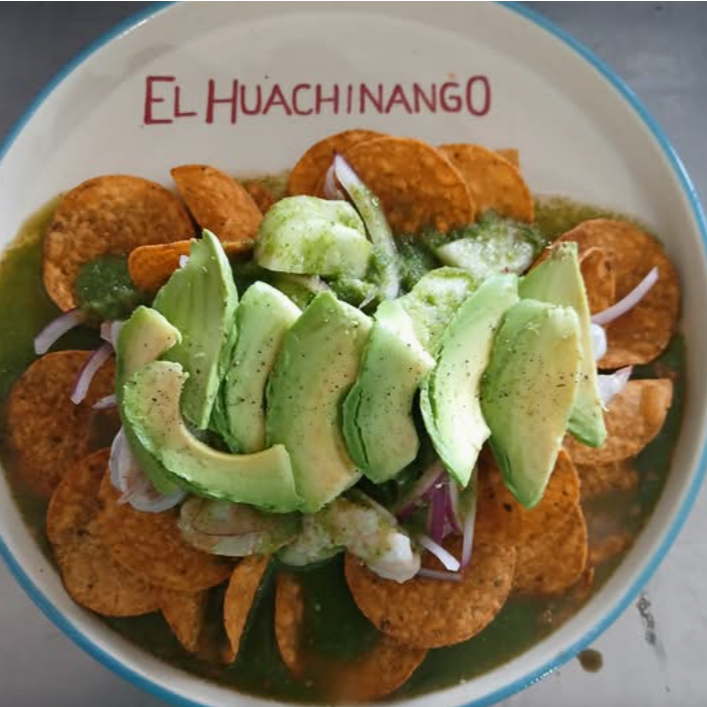 Ricos tostitos acompañados de aguachile verde de camarón.
