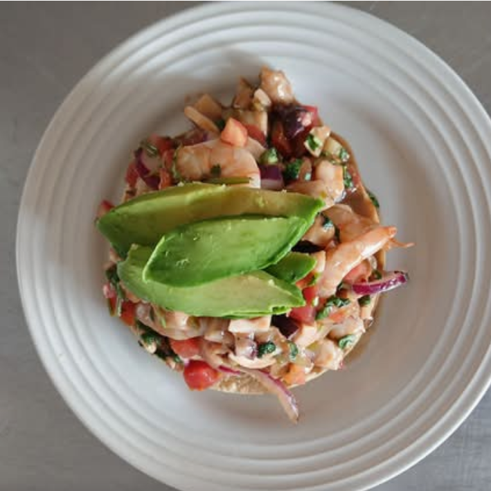 Tostada de Camarón Entero y Pulpo