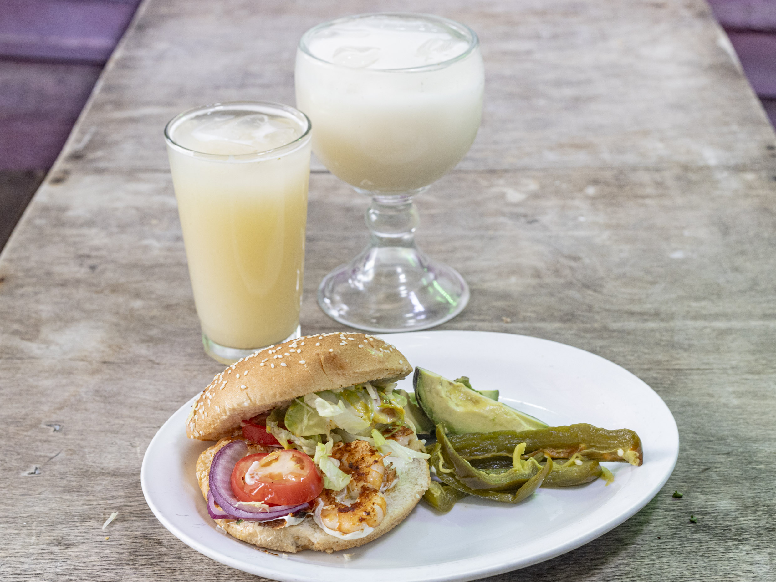 Agua Chica*1 + Hamburguesa de Camarón*1