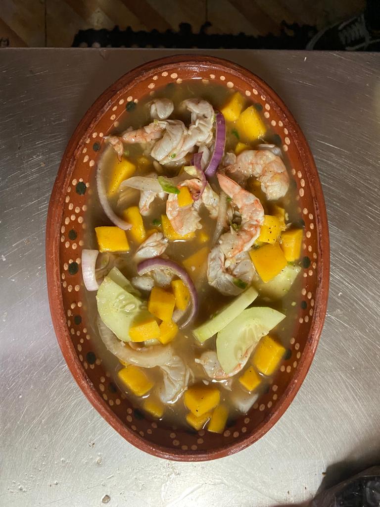 jitomate ,cebolla ,cilantro ,sal ,pescado curtido y limón