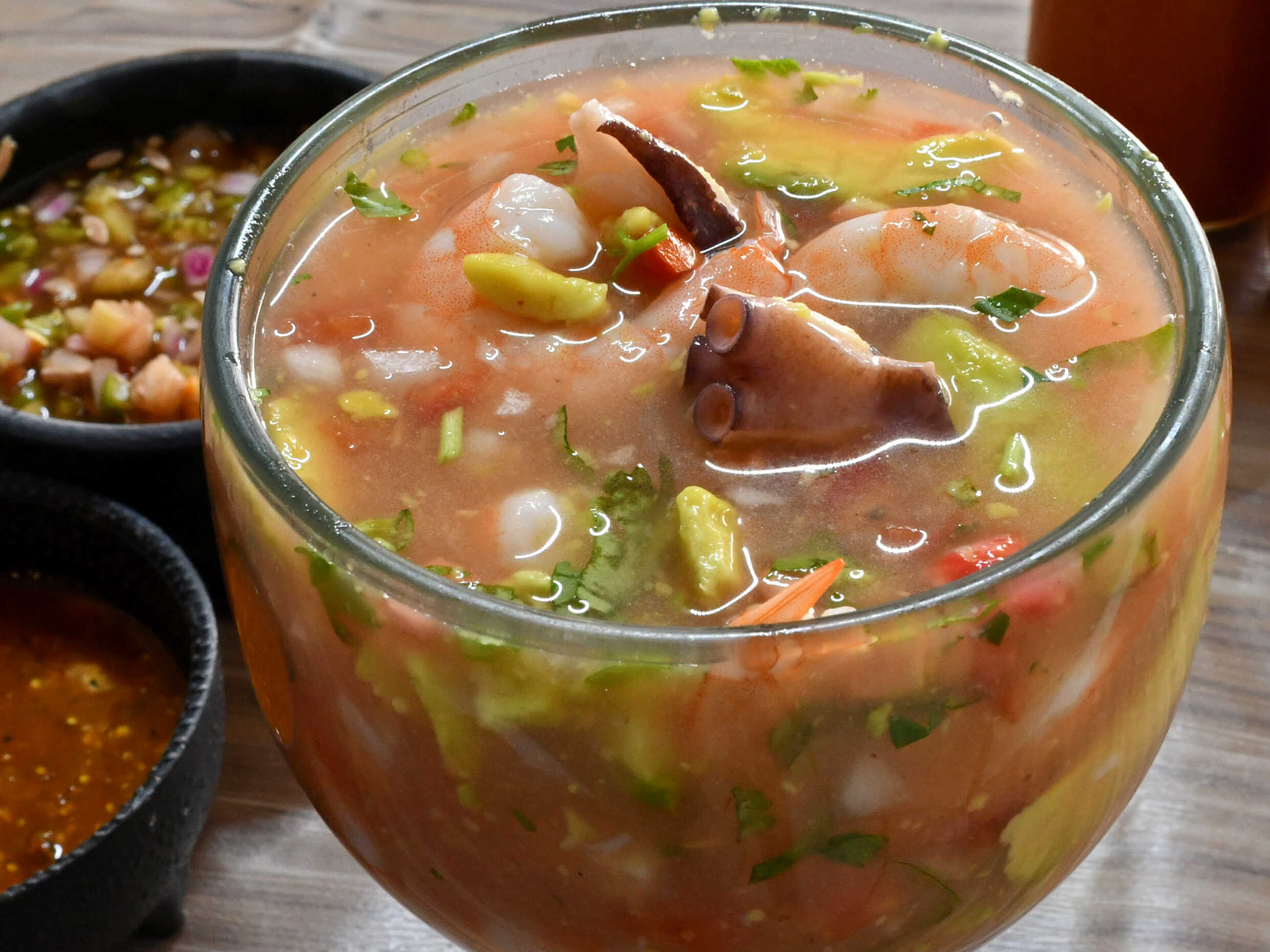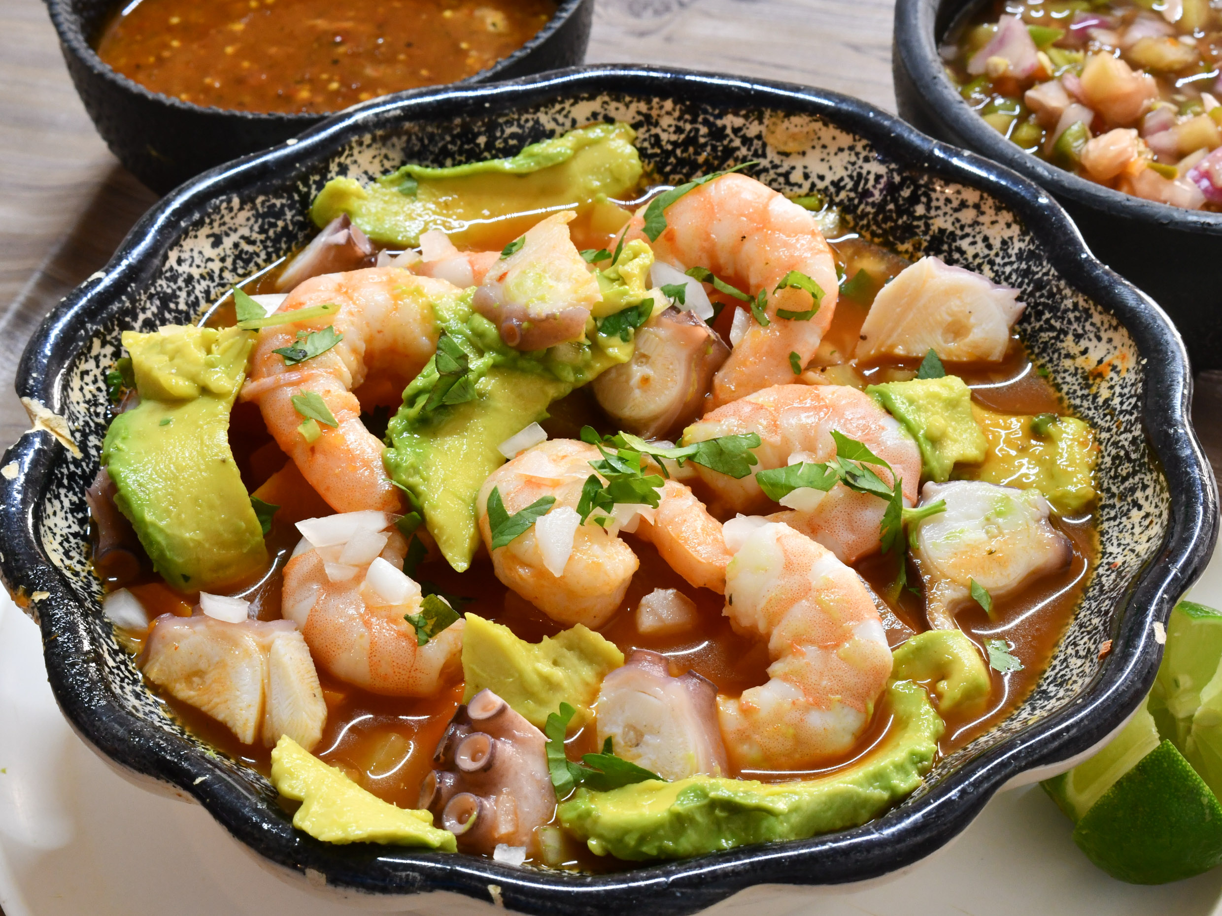 Agua Chica*1 + Tostada Ceviche de Pescado*1 + Cóctel Grande de Camarón*1