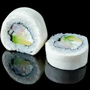 Rollo envuelto en Philadelphia relleno de camarón, pepino y aguacate.