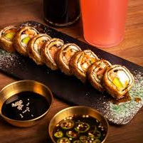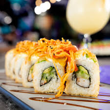 Envuelto en Philadelphia, aguacate y camarón, coronado con tampico y camarón empanizado.