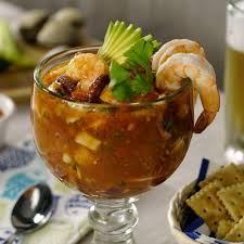 Camarón curtido y camarón cocido con un toque de chile serrano, cilantro y aguacate.