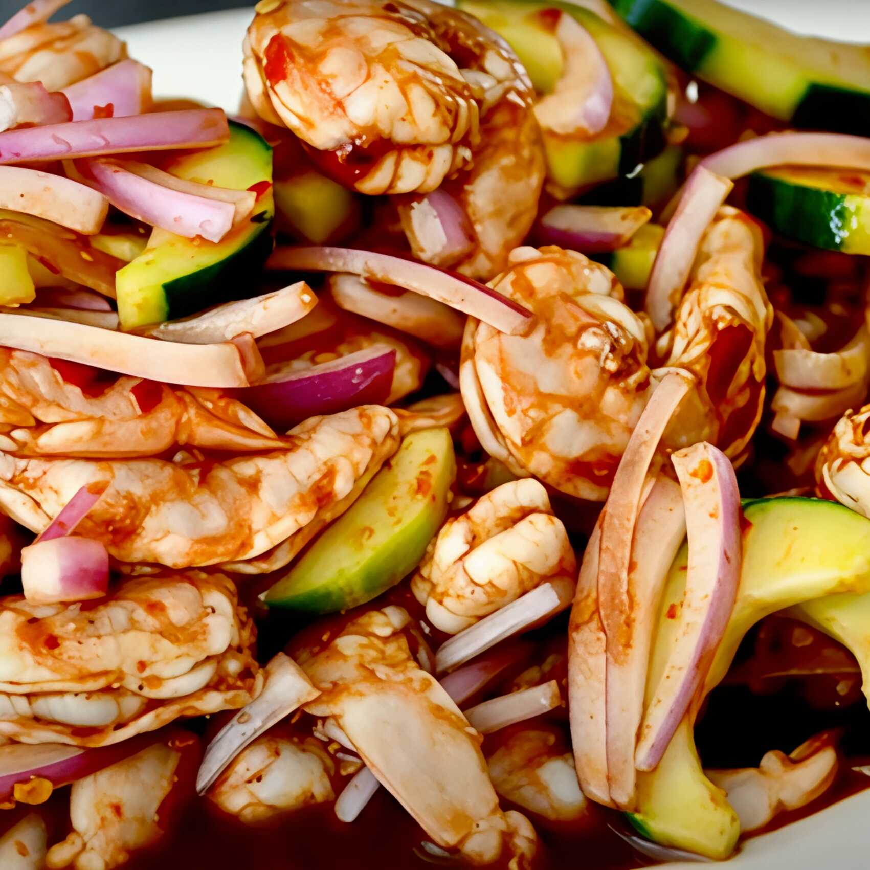 Camarones frescos marinados en chile de árbol, chile piquín y salsa de soya.