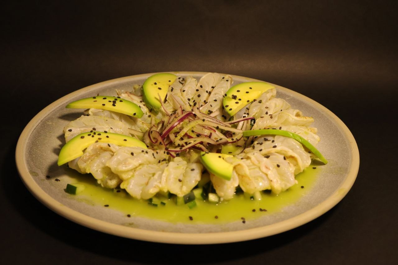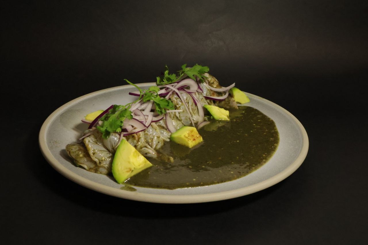 Camarón Curtido (60 g) Camarones marinados en jugo de limón, servidos con cebolla morada, pepino fresco, aguacate y salsa verde de chile serrano.