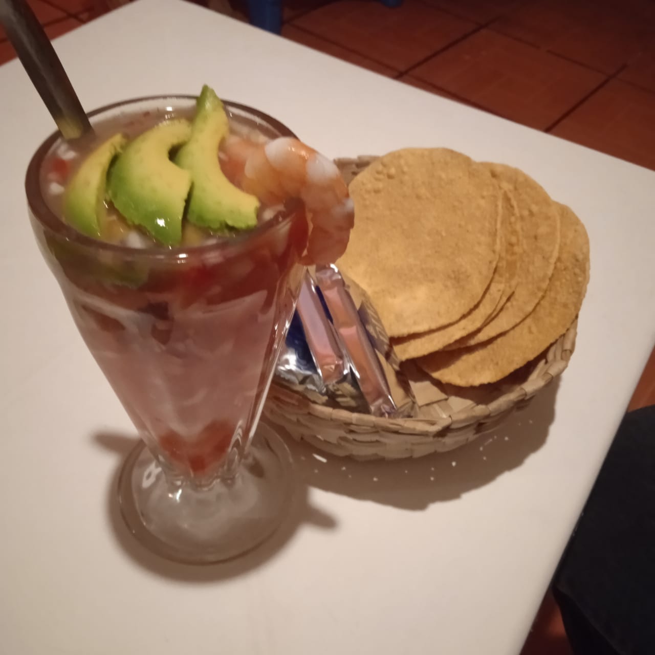 🦐 Ceviche de Camarón Cocido (150 g) gramos de camarón cocido, preparados con una mezcla fresca de jitomate, cebolla morada, pepino, cilantro y jugo de limón, sazonados con un toque de sal y pimienta. Servido frío y acompañado de aguacate y tostadas.