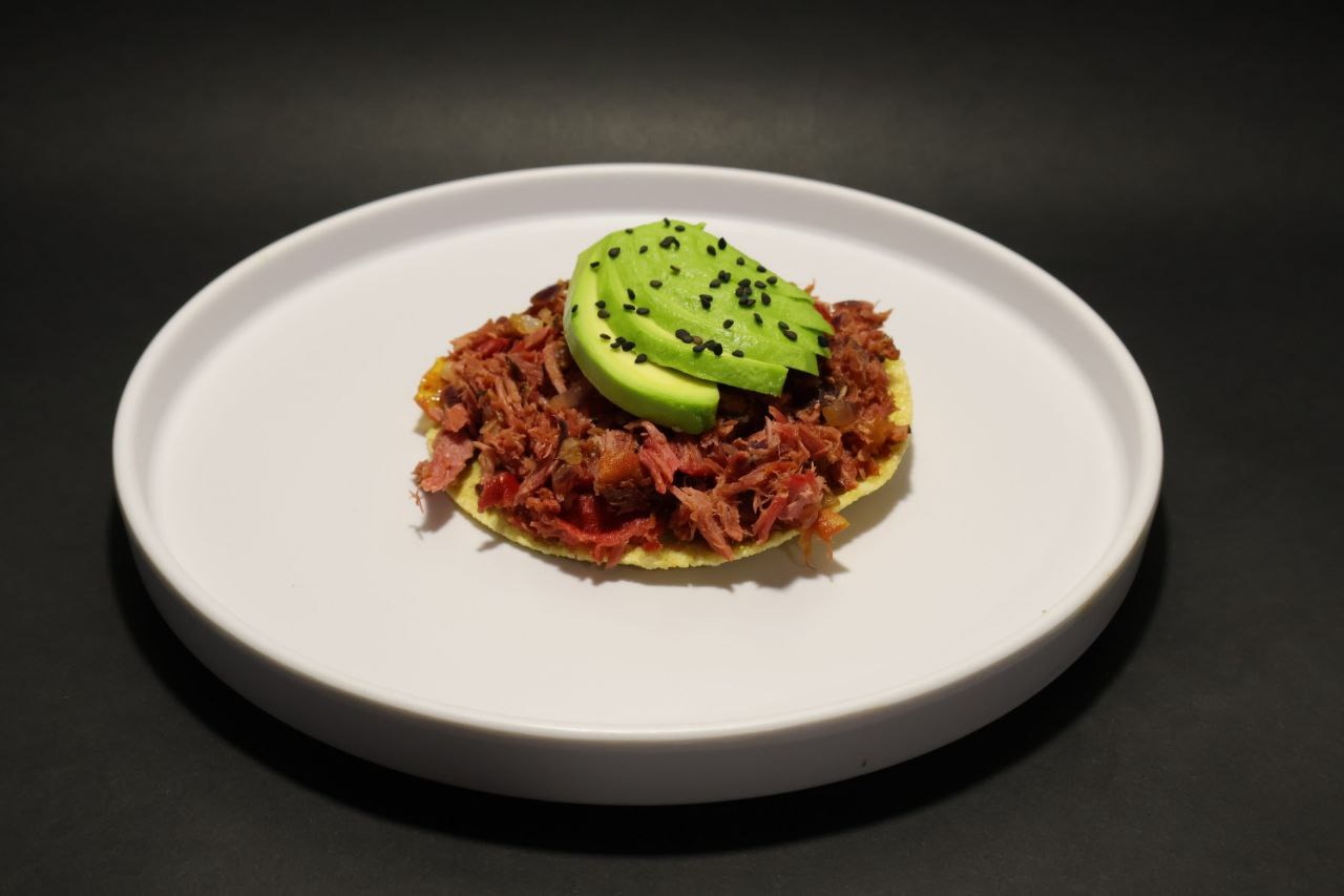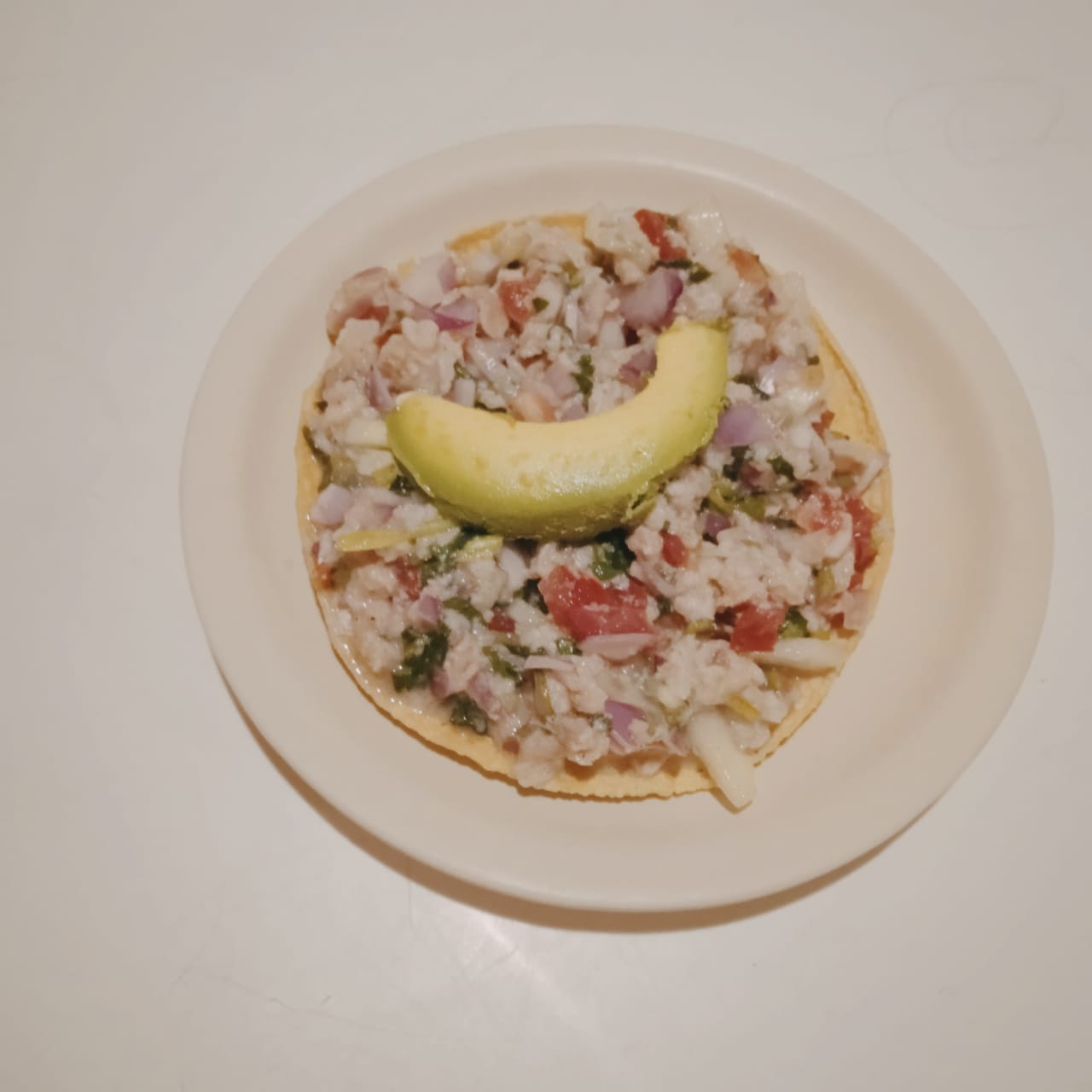 Pescado molido (100 gr ) curtido con limón, jitomate, cebolla, pepino, cilantro y aguacate.