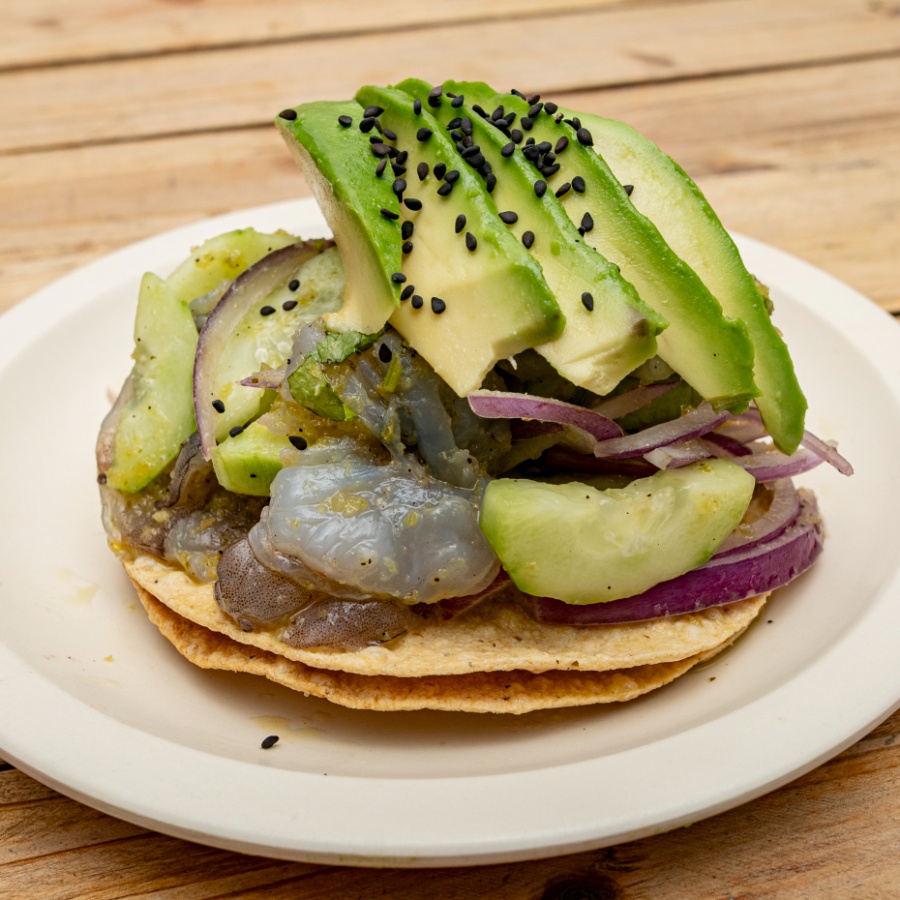 Aguachile Personal - Tostada- Verde, rojo y negro