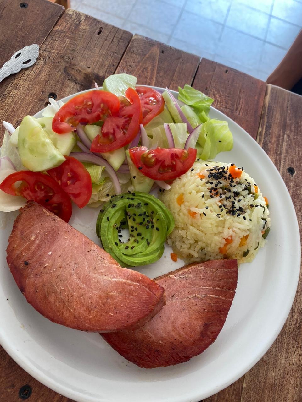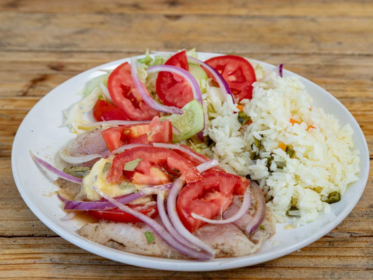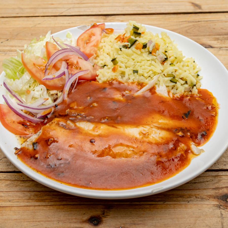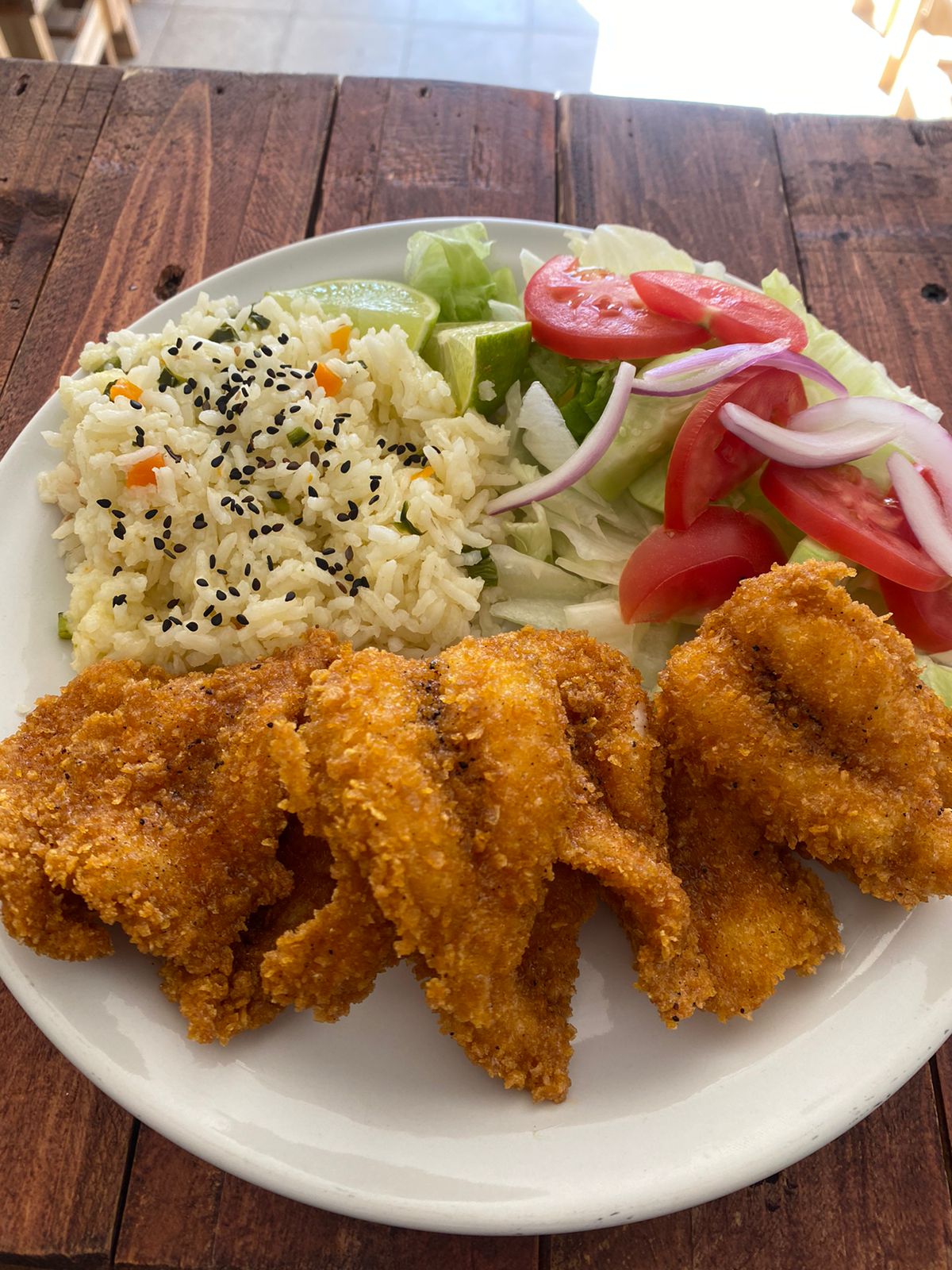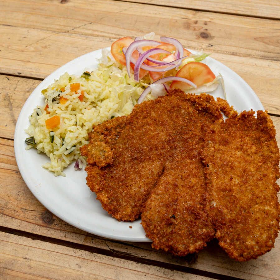 1 pieza 180-200gr - Filete Empanizado, Arroz y ensalada
