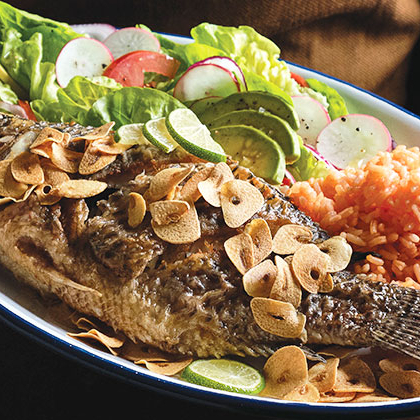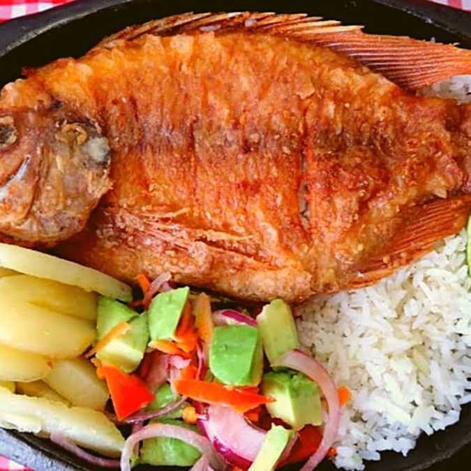 Rica mojarra 500 g dorado, va con arroz y ensalada.