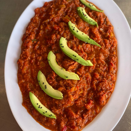 Marlin gisado con una salsa especial jitomate y cebolla.