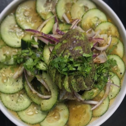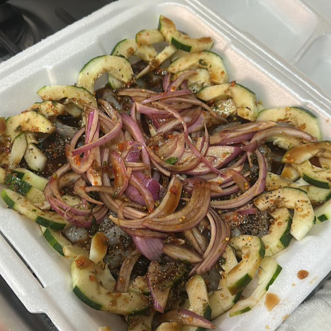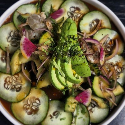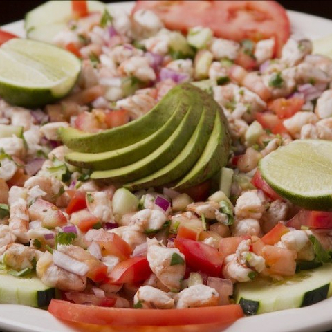 Camarón curtido en limón con vegetales frescos y toque especial de la casa.