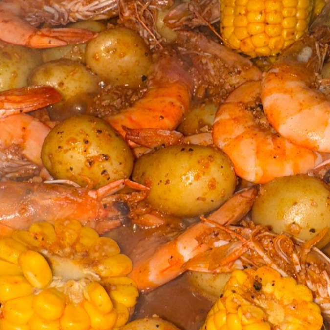 Camarones bañados en mantequilla especiada estilo cajún, jugosos y picantes.