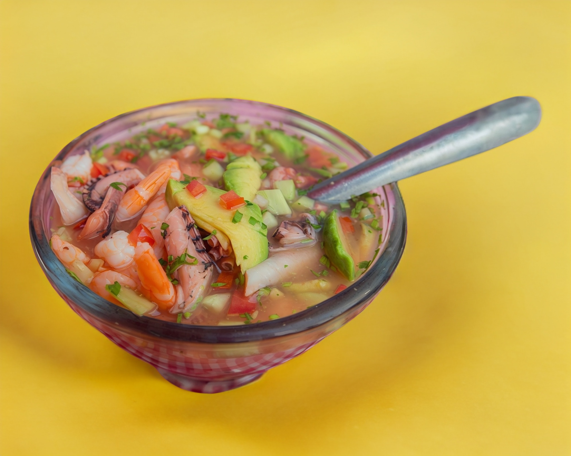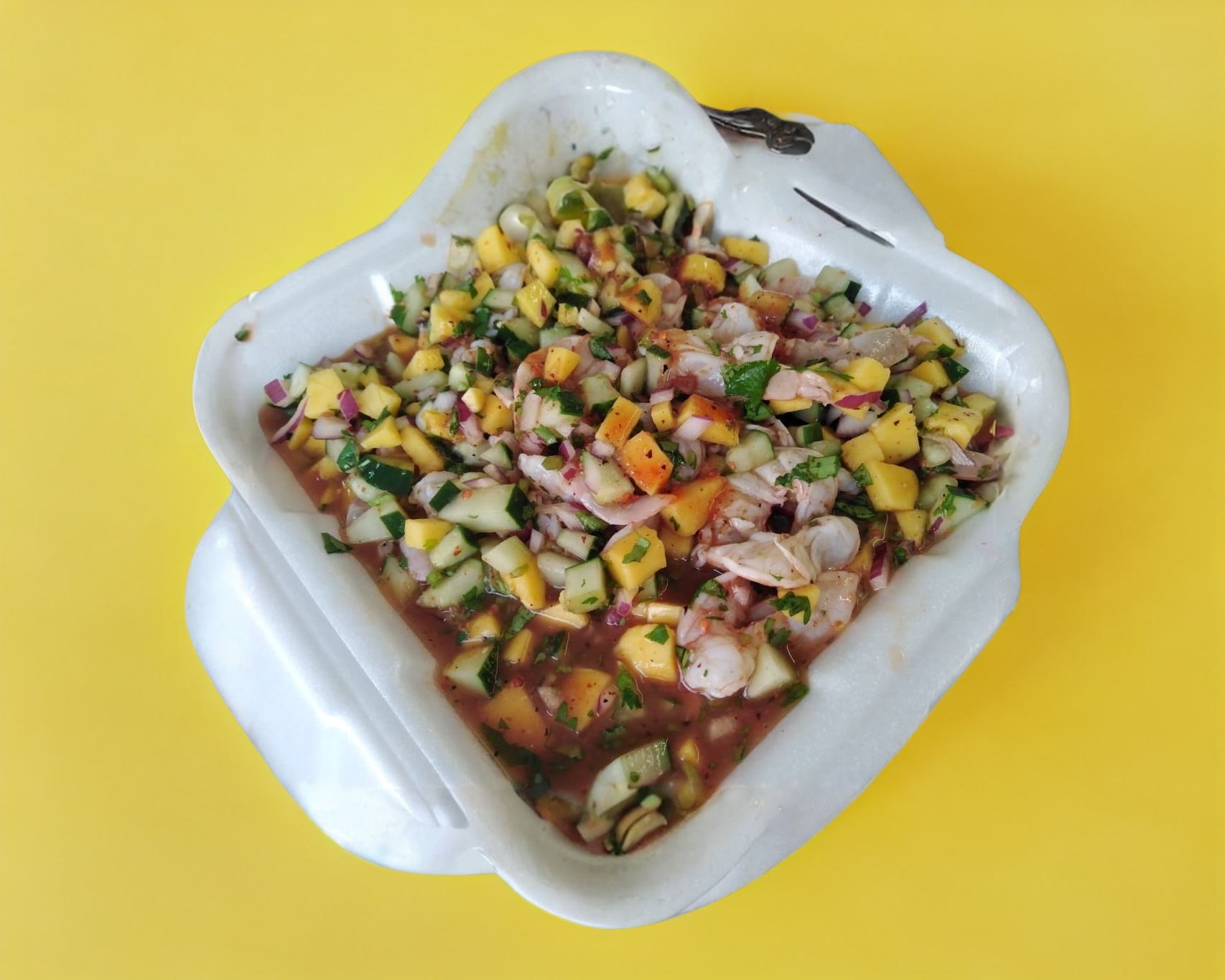 1/2 litro de ceviche de camarón con un toque de Clamato
