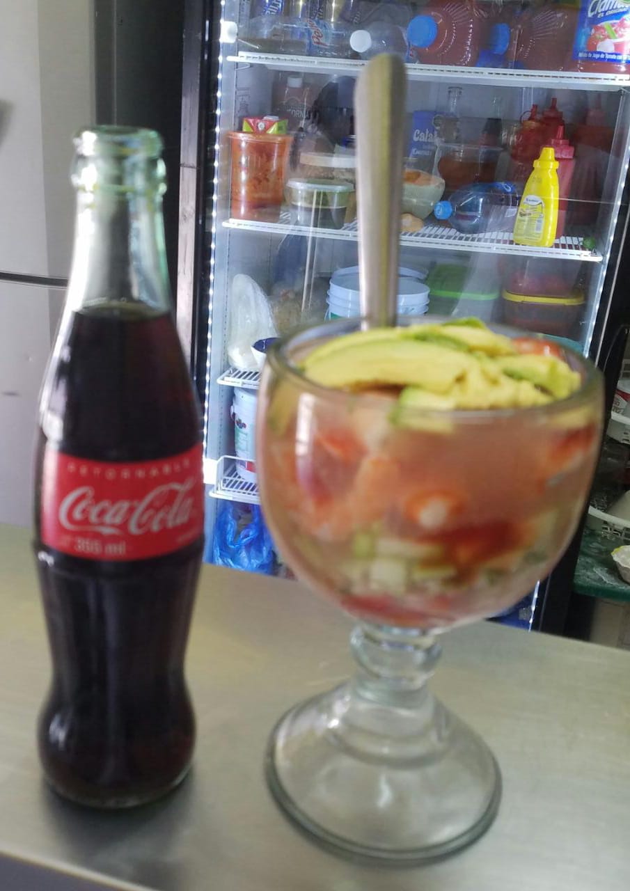 Cóctel grande de camarón (bowll) complemetos: tostadas, galletas, catsup y chile