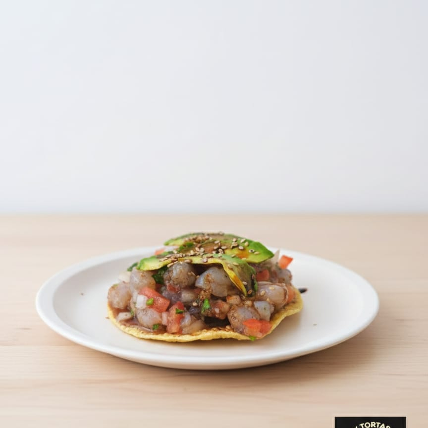 Tostada de Ceviche de Camarón Curtido