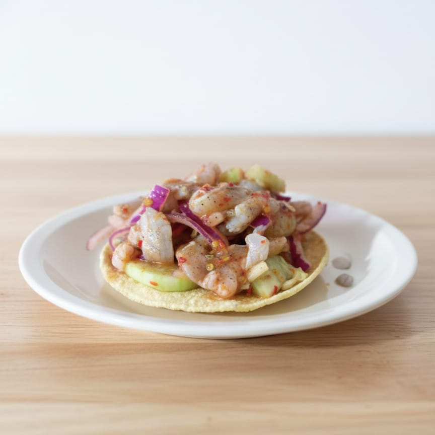 Tostada de Ceviche de Camaron Cosido