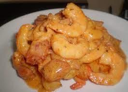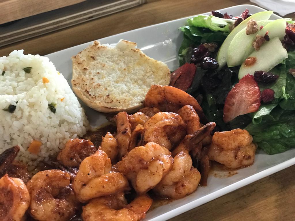 Camarones en salsa de la casa.