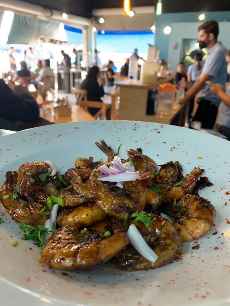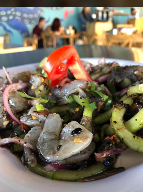 Camarones fritos salteados en salsa negra y un toque de chile serrano.