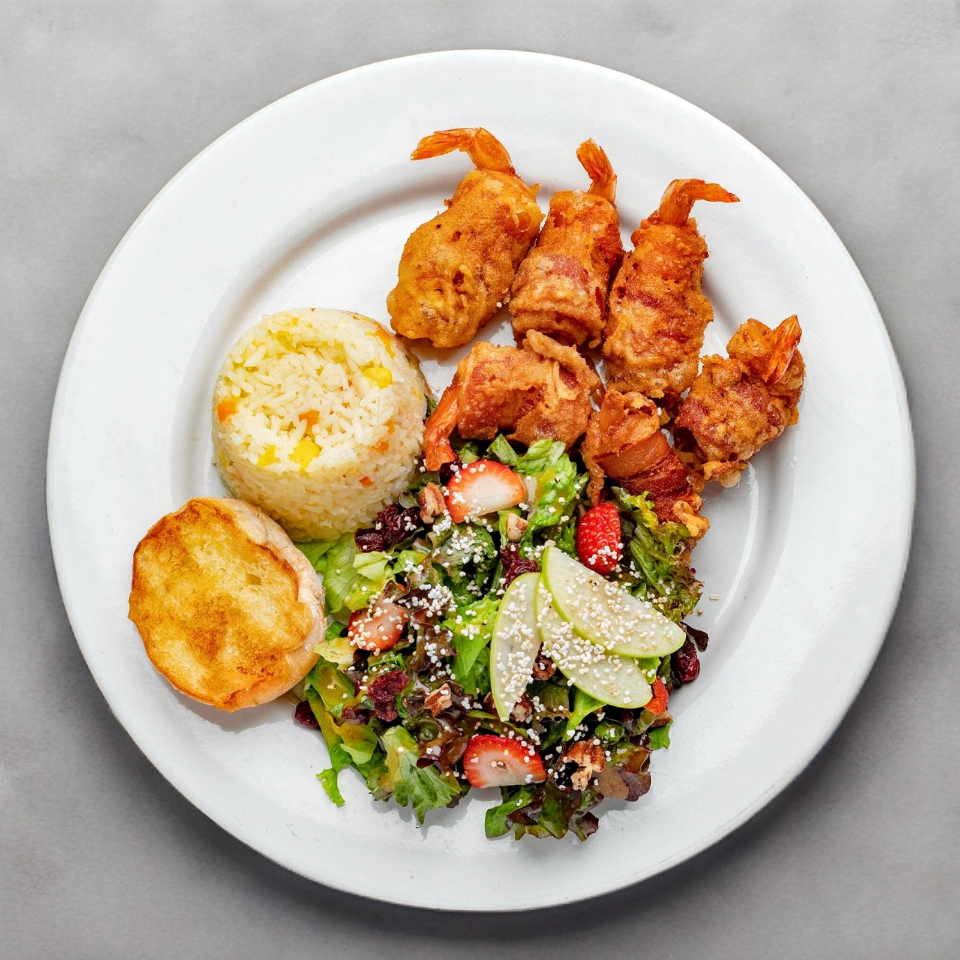 Camarones empanizados en coco rallado.