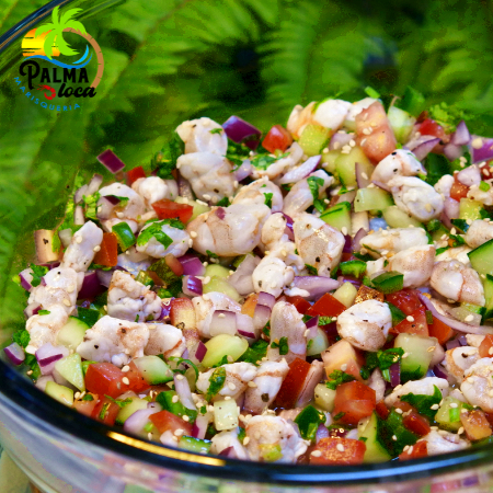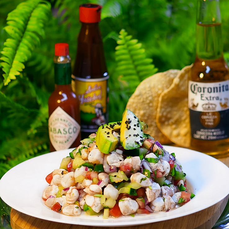 Camarón curtido en limón, cebolla morada, pepino, Clamato y salsa especial de habanero.