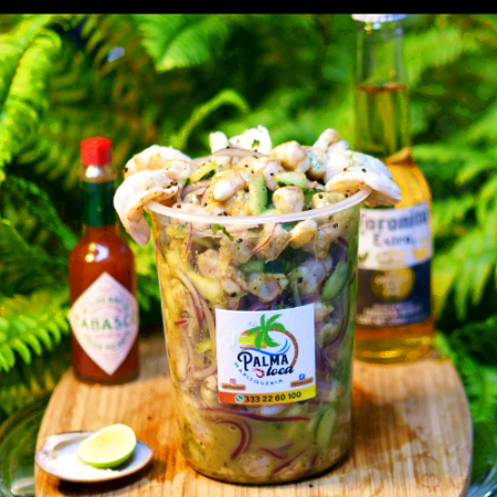 500 ml,Camarón curtido en limón, cebolla morada, pepino, Clamato y salsa especial de habanero.